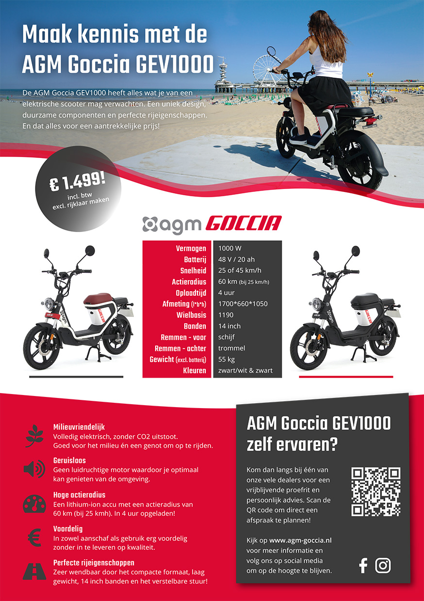 De AGM Goccia GEV1000 heeft alles wat je van een elektrische scooter